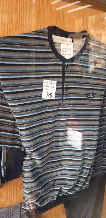Pijamas, calzoncillos, camisetas interiores, calcetines, cinturones, corbatas, tirantes, gemelos, bufandas, guantes, gorros.